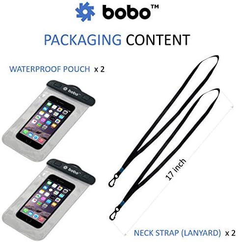 BOBO Universal Waterproof Pouch Cellphone Dry Bag Case for iPhone Xs Max XR XS X 8 7 6S 6 Plus, Samsung Galaxy S9 S8 + Note 8 6 5 4, Pixel 3 2 XL, Mi, Moto up to 6.5 inch – Transparent (Pack of 2)-India Best Mobile Covor